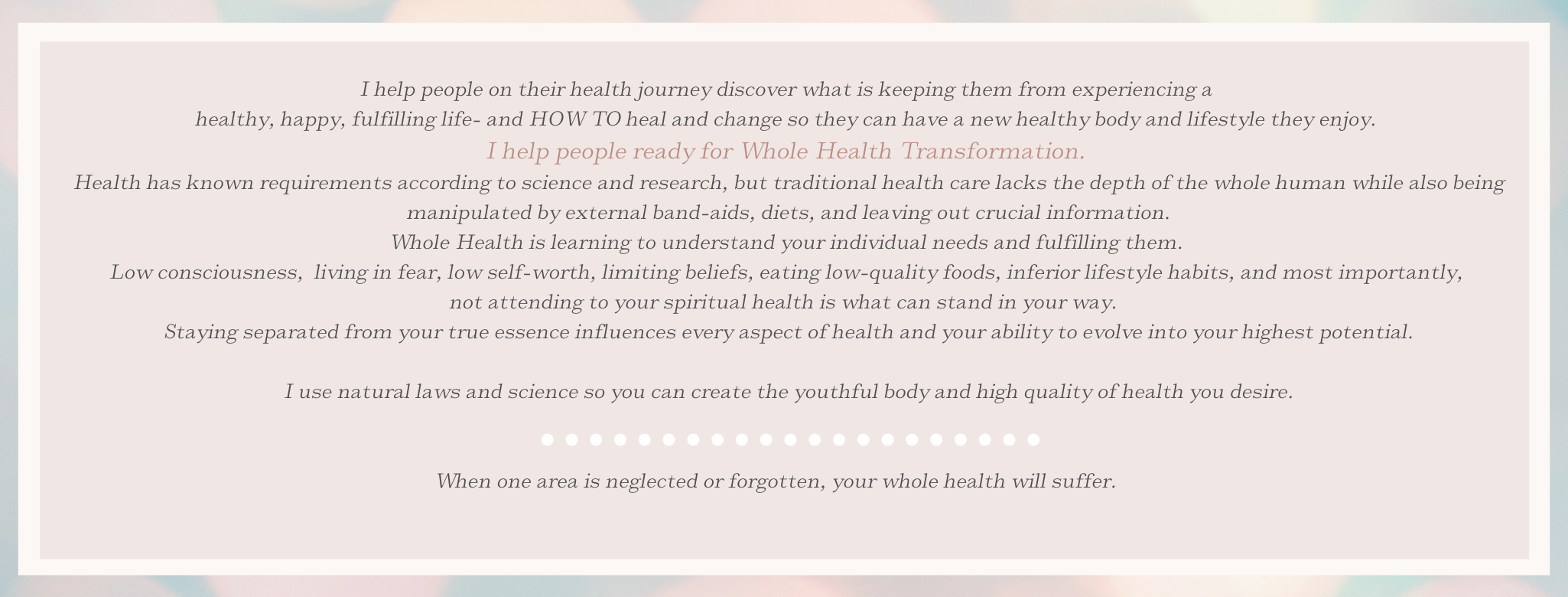 This is about aligning with natural laws and biblical principles that guide the body and mind back into restoration—learning how to live in a way that supports lasting, vibrant health and reflects the woman you already are.